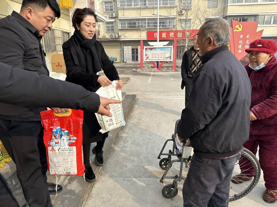 在春节来临之际,为进一步做好民生服务,不断完善民生保障体系,确保让best365官方网站党建共建社区内低保户、低保边缘户、残疾人群得到温暖,使他们能过一个充盈幸福的新年。近日,濉溪best365官方网站党支部携手溪河社区党群服务中心开展了慰问辖区困难群众活动,并送上米、面、油等慰问品,把政府的温暖与祝福送到社区内生活困难家庭中,虽然东西不多,但这份"关爱"是春节前最温暖的礼物。